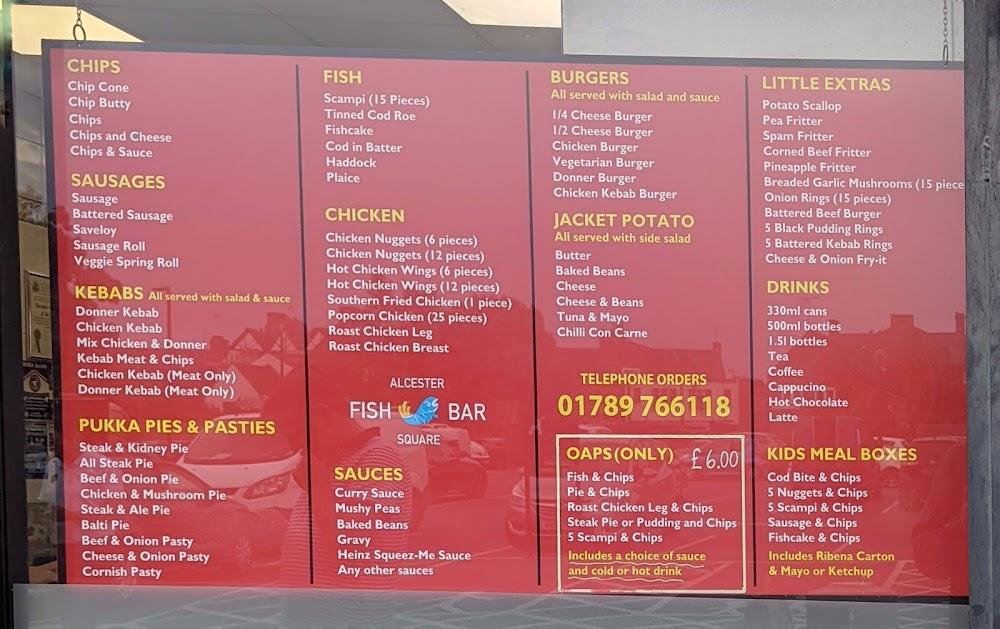 Located at Unit 2 Moorfield Rd, Alcester B49 5DA, the Alcester Square Fish Bar is a beloved local gem. Its casual vibe and friendly staff create a welcoming environment for solo diners and families alike. The location is easy to reach, with free street parking and a dedicated parking lot. It's wheelchair accessible, ensuring everyone can enjoy a meal here without hassle. Open every day of the week, this fish bar has become an integral part of the community, where regulars often queue for their favorite meals. The focus here is on quality, affordability, and a menu that caters to diverse tastes. With quick takeaway options, convenient delivery, and dine-in availability, Alcester Square Fish Bar fits seamlessly into the bustling town life. Patrons rave about the consistency of the food, and the ambiance enhances the overall eating experience.